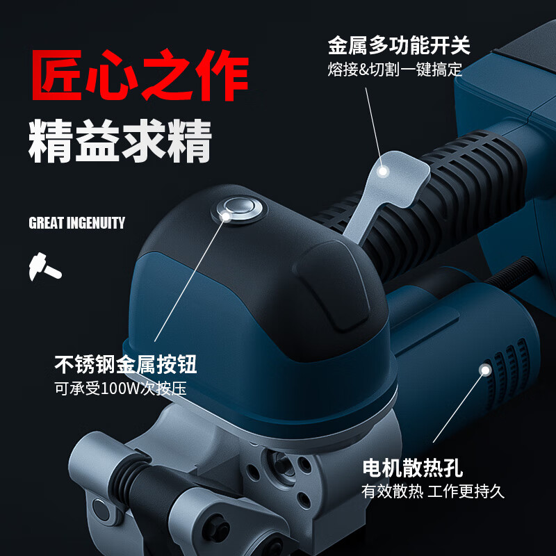 手持電動打包機(jī)D19,5500N強(qiáng)勁拉力,銅芯電機(jī)低音轉(zhuǎn)軸,400MA*2雙電池超長續(xù)航,充電僅需90分鐘